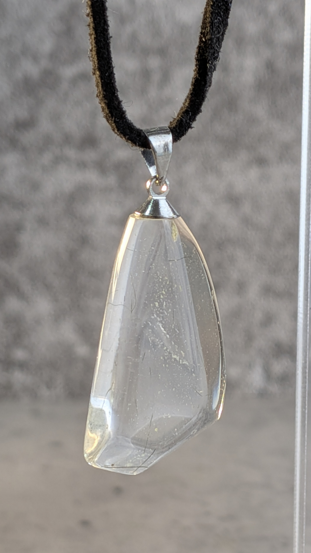 A naturally occurring, clear quartz with a subtle golden hue. Its gentle glow, emanating from within its transparency, evokes the warmth of the sun. The harmony of light and stillness seems to teach us about "the beauty of being as one is."