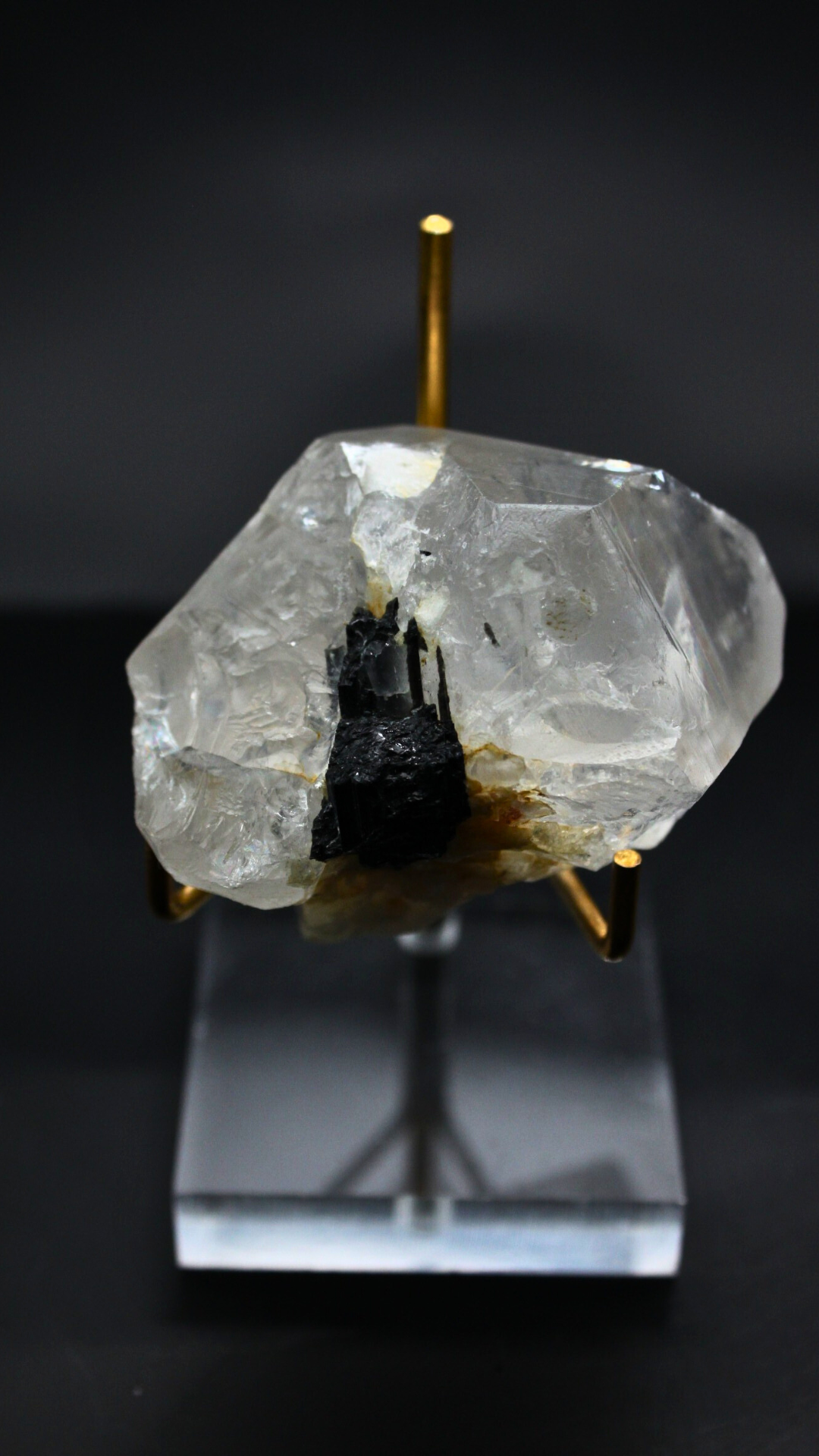フンザ・ホッパー鉱山で採掘された、レインボークウォーツとブラックトルマリンが美しく融合した結晶です。サイズは50×65×40mmで、存在感のある大きさが特徴です。