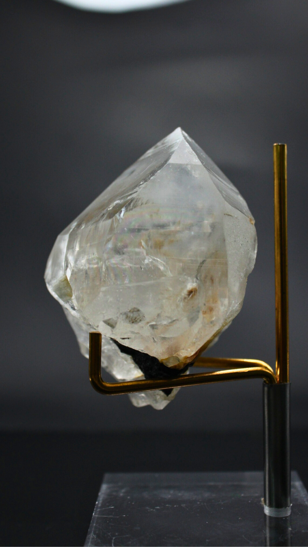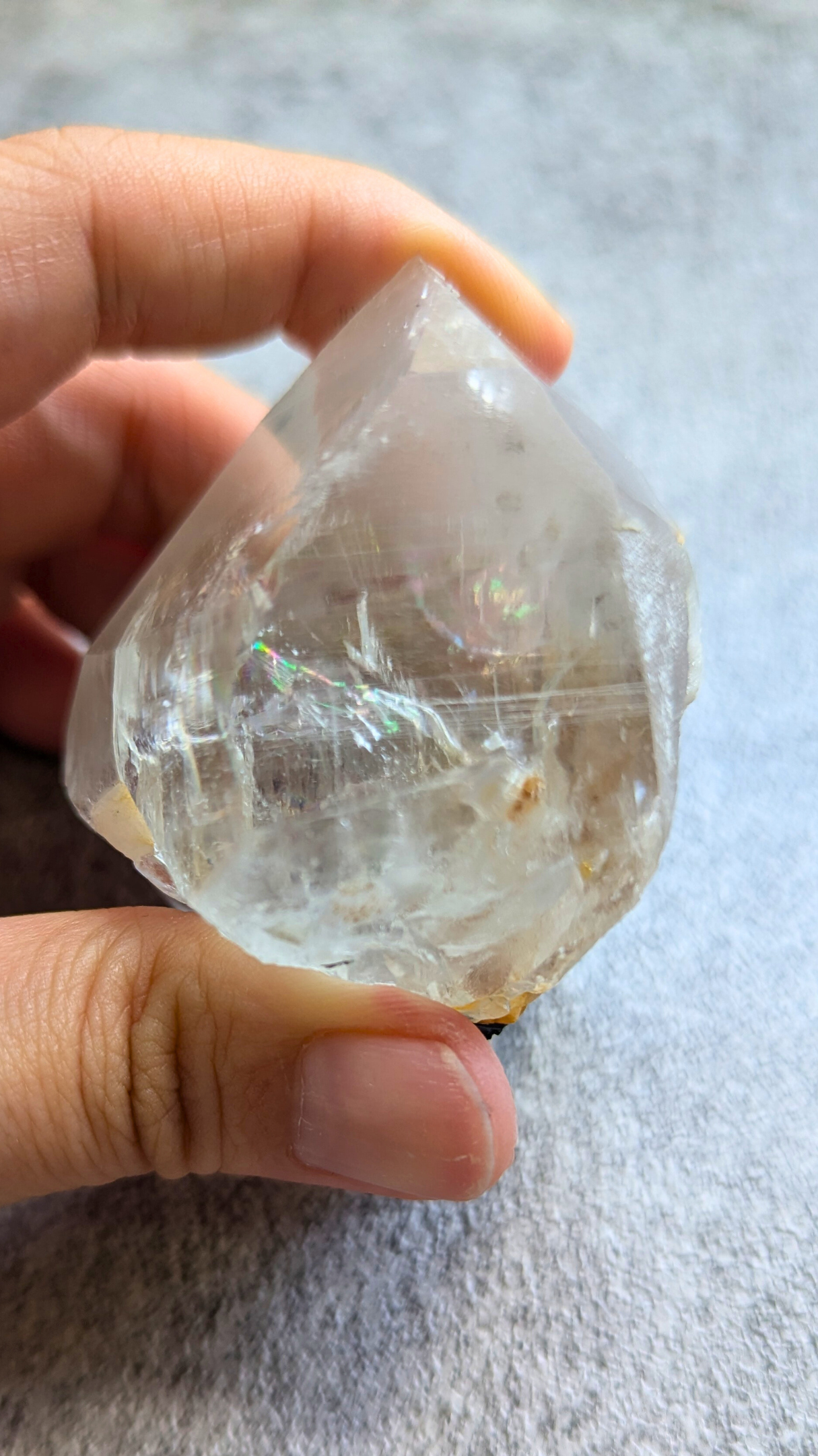 このクリスタルは、インテリアとしてお部屋に彩りを加えるだけでなく、ヒーリングストーンとしても高い効果が期待できます。レインボークウォーツは創造性やポジティブなエネルギーを高め、ブラックトルマリンは保護とグラウンディングの効果があります。二つの石が一体となることで、心身のバランスを整え、穏やかな環境を提供します。
