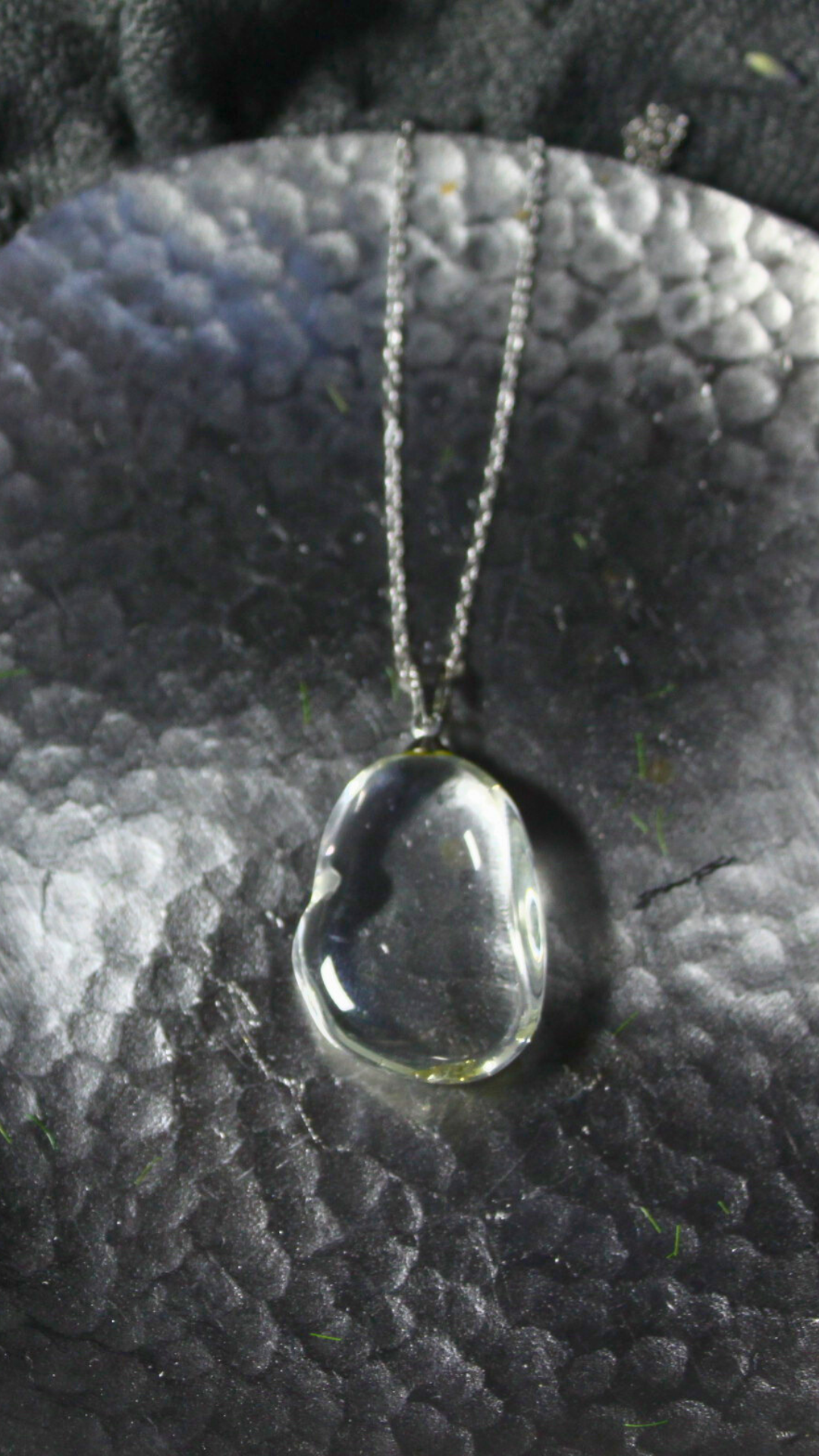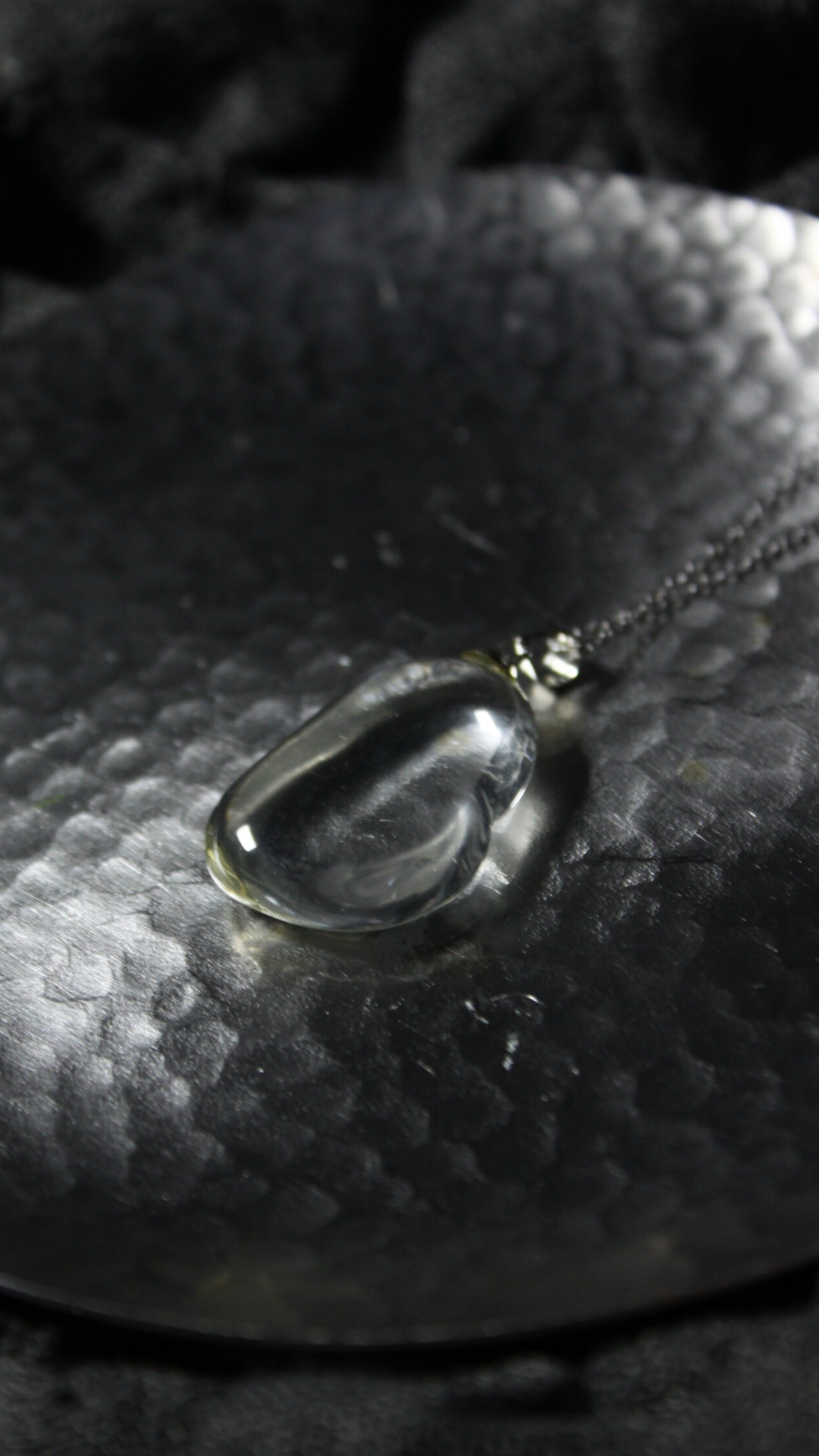 This is a pendulum made with a cute bean-shaped clear quartz. The high-clarity clear quartz helps to purify energy and enhance intuition. This unique shape is easy to hold and is not only lovely as a pendulum, but also makes a cute pendant and can be enjoyed as everyday jewelry.