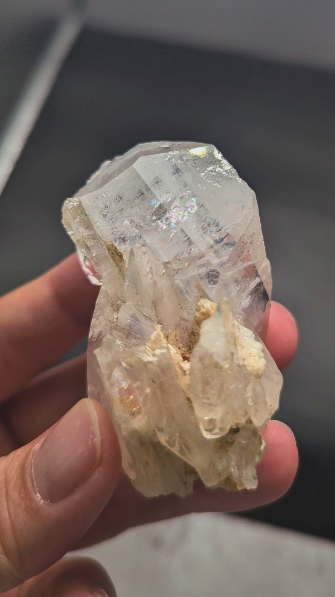 This is a quartz with a subtle admixture of hematite, possessing a mysterious brilliance woven by nature. The iron-containing hematite is scattered as inclusions within the transparent quartz, and these beautiful reddish-brown inclusions give the stone a unique character.